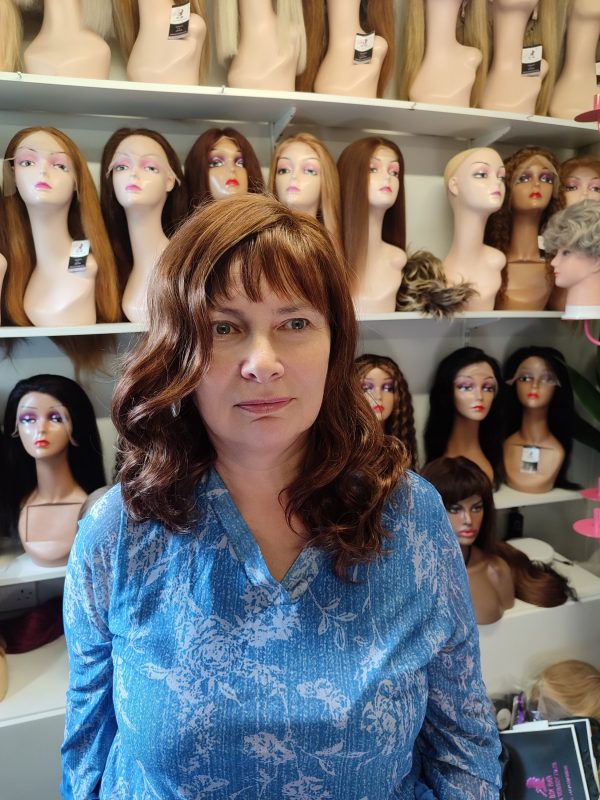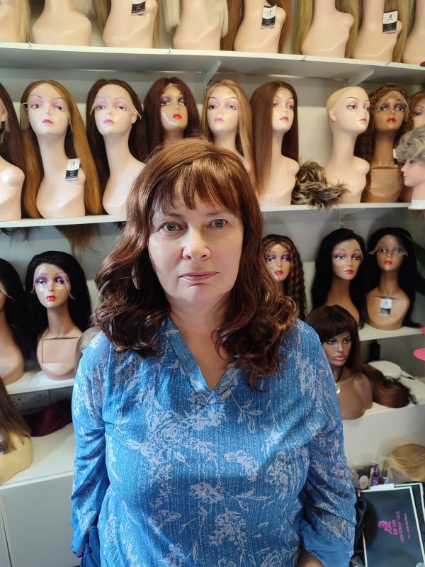 Be the first to review “Dark brown Synthetic fibre wig”